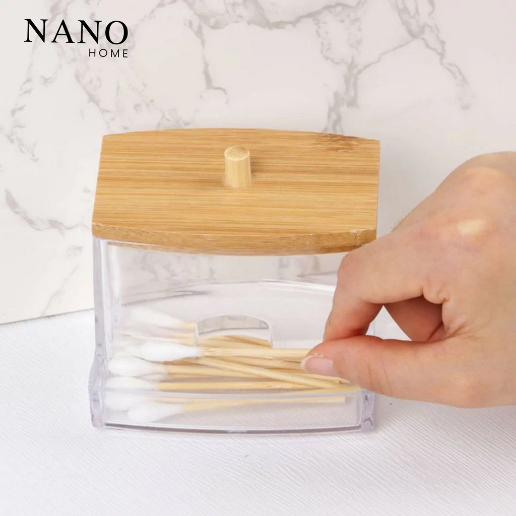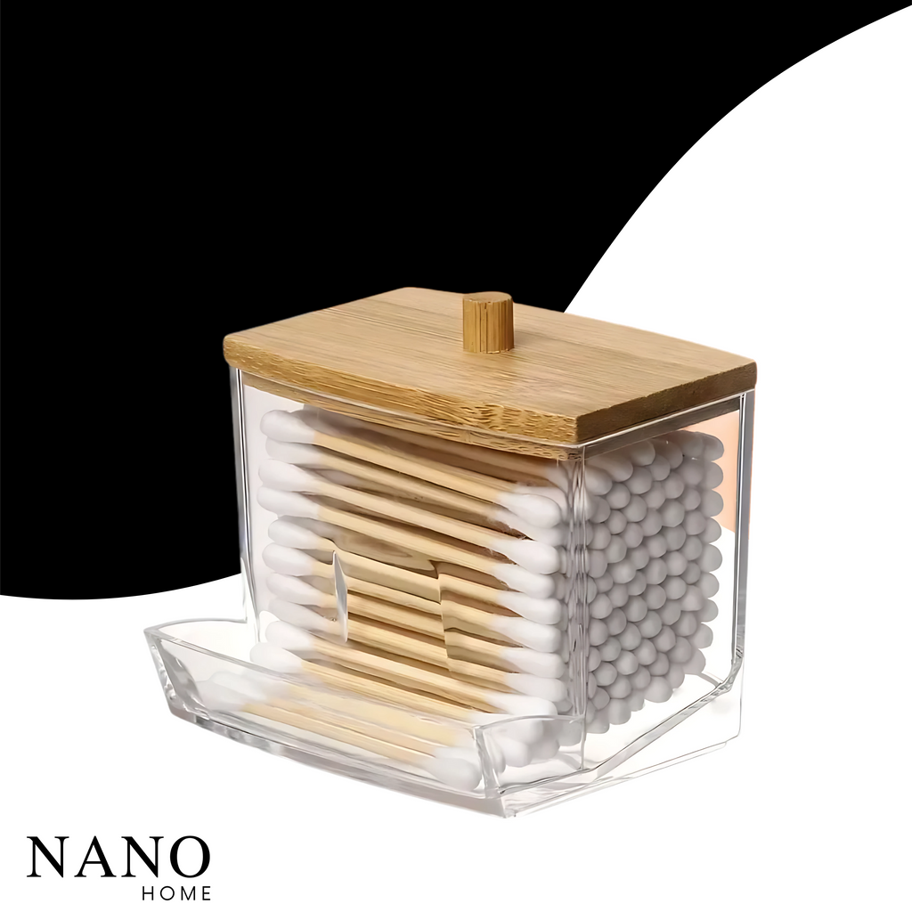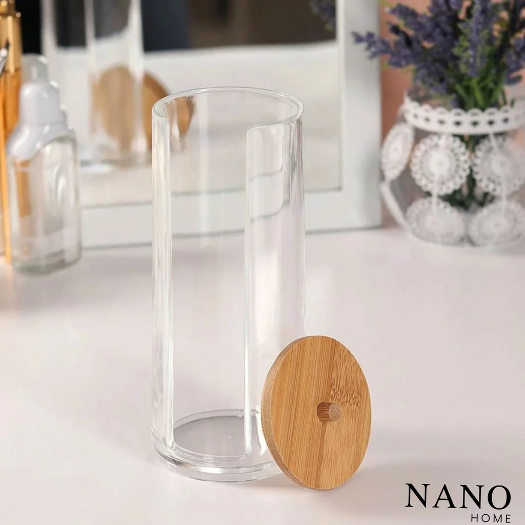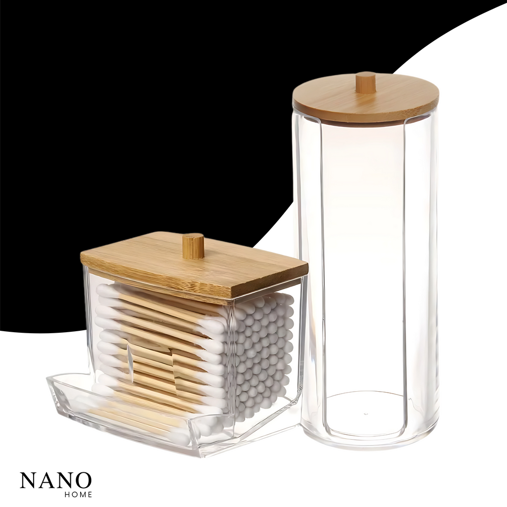 O Kit Organizador de Algodão e Cotonetes une a transparência moderna do acrílico com a sofisticação natural do bambu, trazendo equilíbrio perfeito entre funcionalidade e elegância.