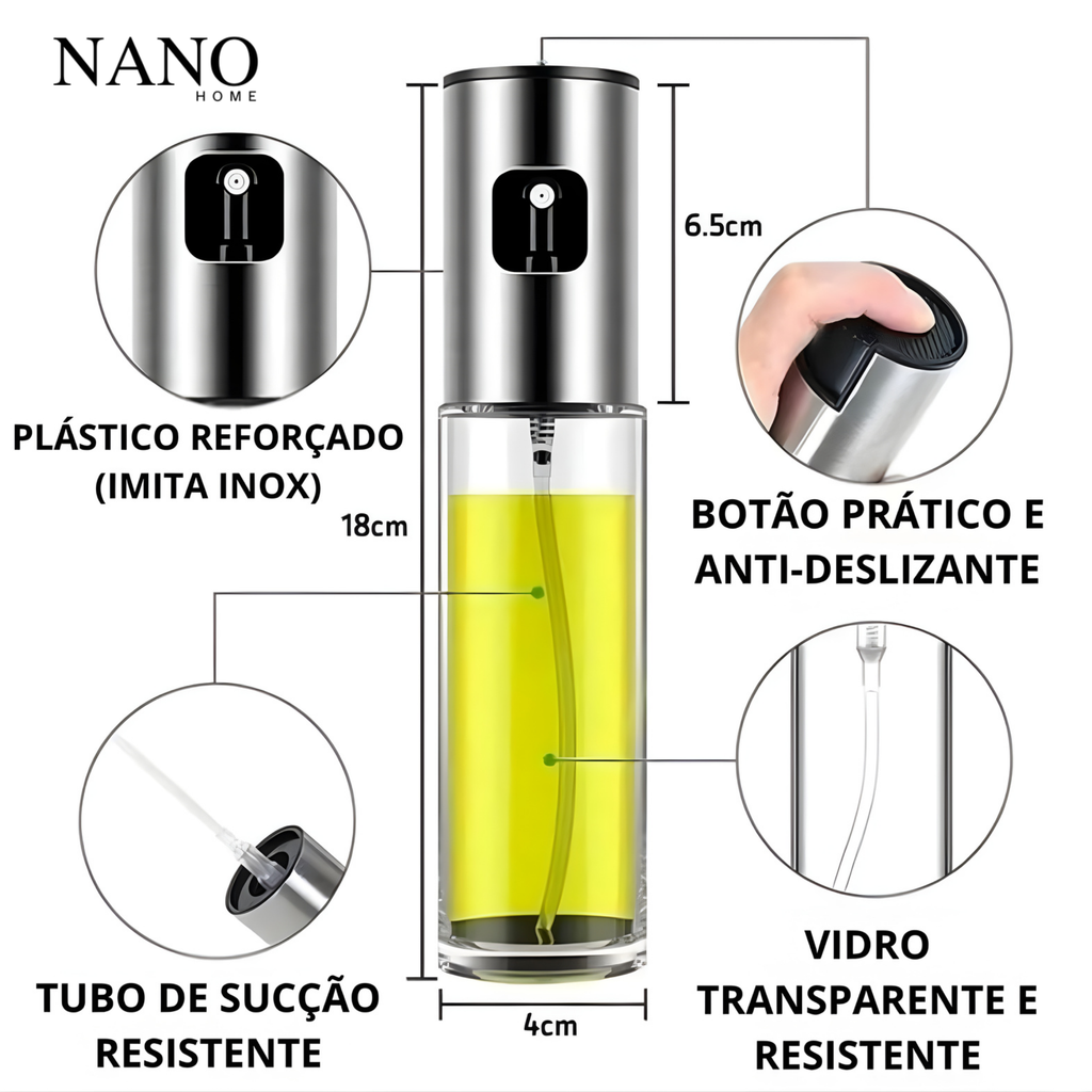 Reduza o desperdício com um borrifador que espalha o azeite de forma uniforme. Também pode ser usado com vinagre, molhos, limão e outros líquidos — um verdadeiro coringa na sua rotina culinária.
