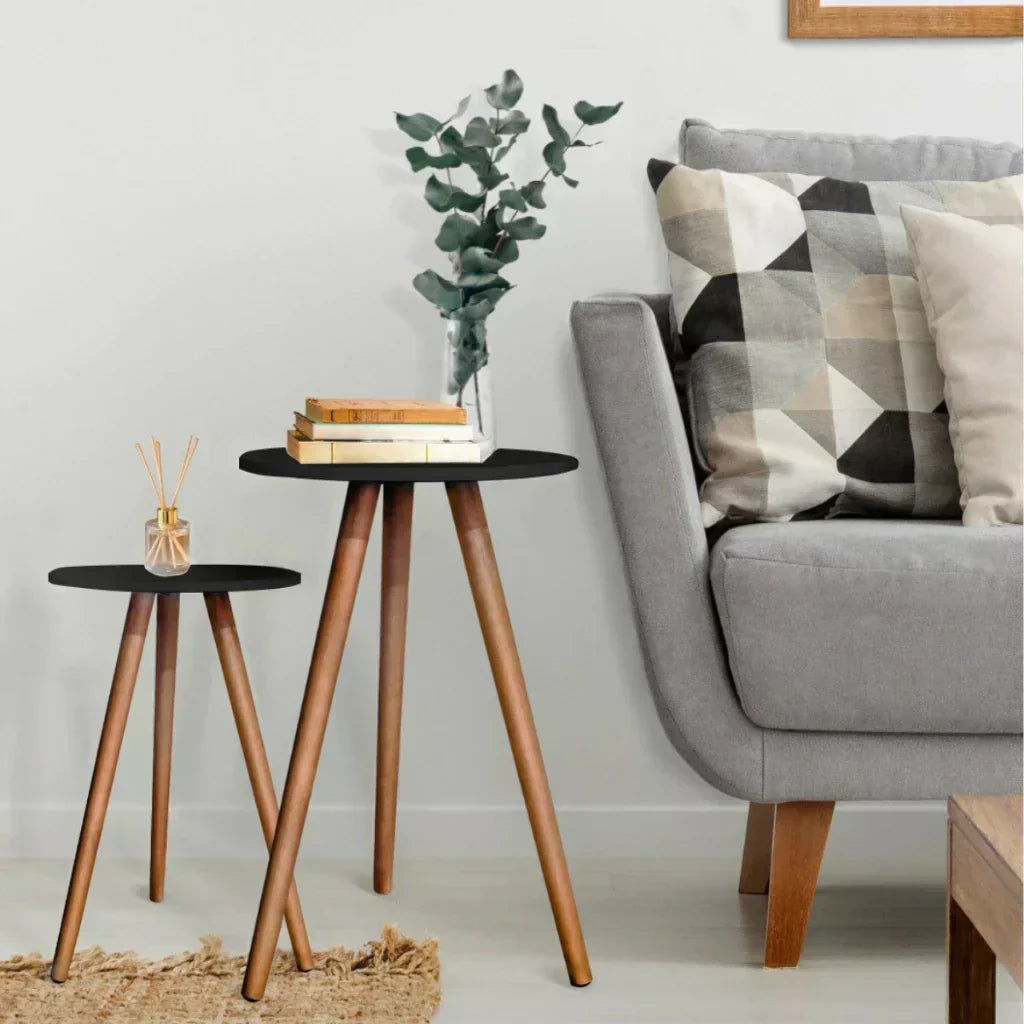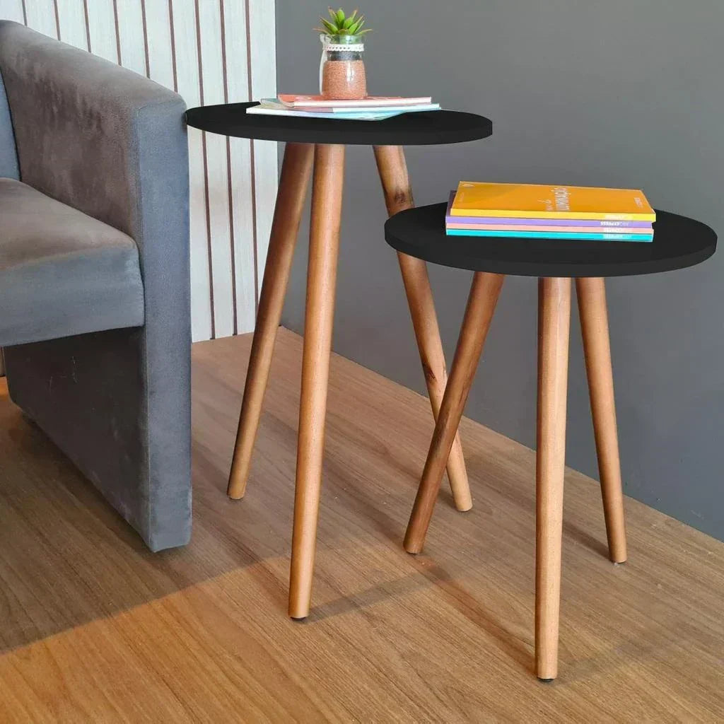 Adicione estilo e funcionalidade à sua sala com este conjunto de mesas laterais redondas. Com design compacto e moderno, elas são perfeitas para otimizar espaços e complementar a decoração.