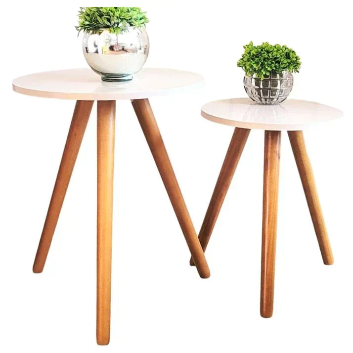 Kit com 2 Mesas Laterais Redondas - Canto de Sofá