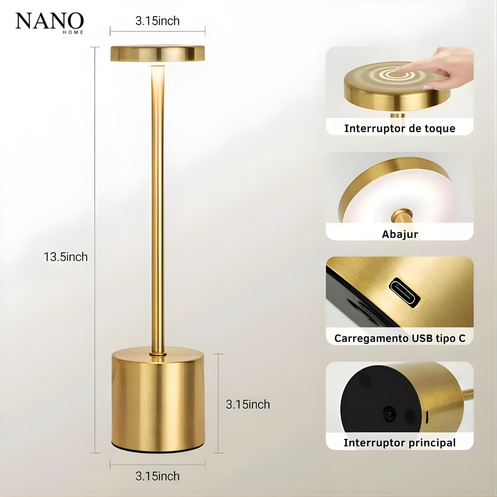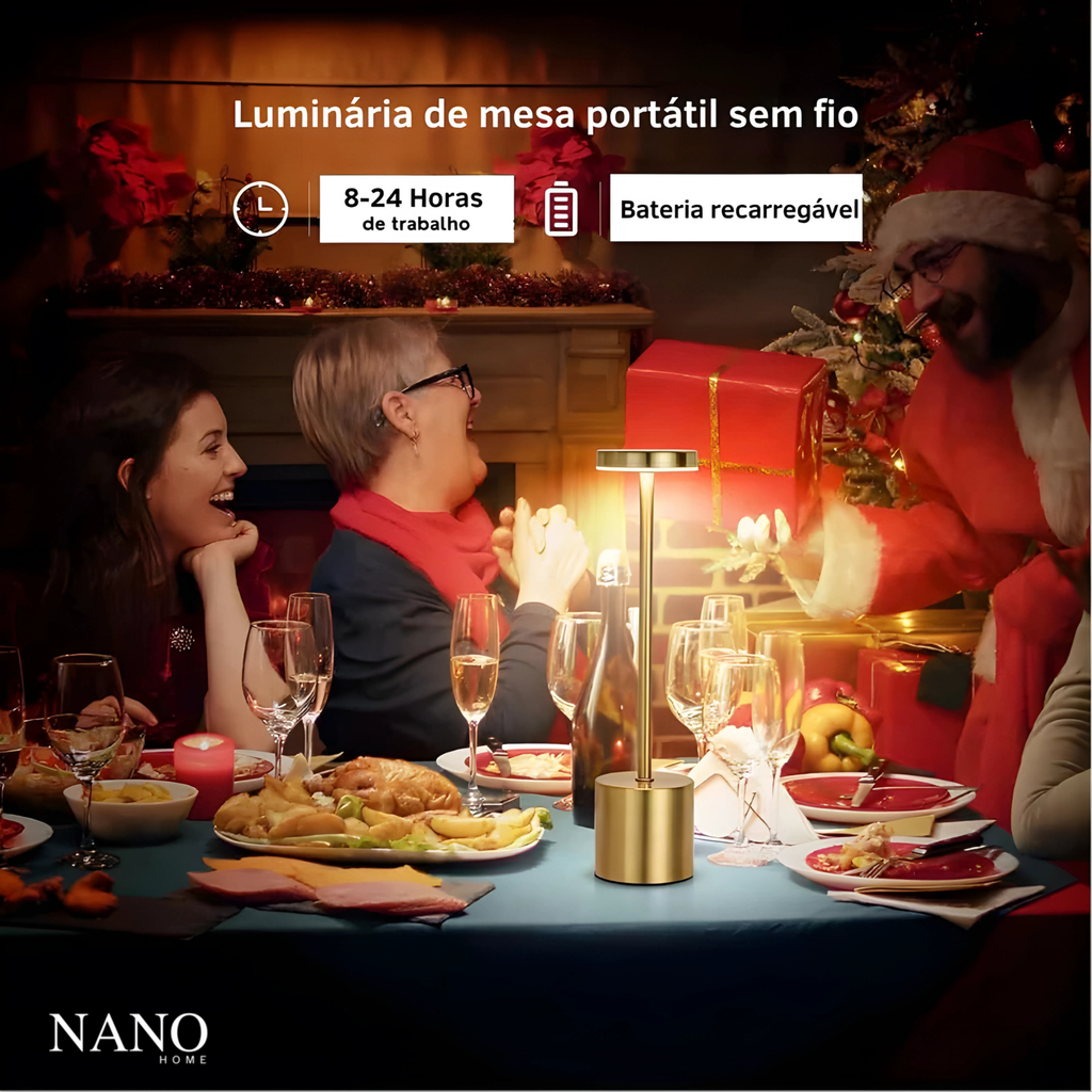 Transforme o clima de qualquer ambiente com esta luminária moderna, recarregável e portátil. Ideal para leitura, jantares, ambientes românticos ou para tornar sua mesa mais charmosa, ela combina design sofisticado com eficiência.